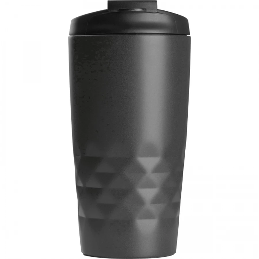 Kubek ze stali nierdzewnej, z podwójnymi ściankami (izolacja próżniowa) i plastikową zakrętką z otworem do picia. Utrzymuje ciepłą temperaturę napoju do 12 godzin, a zimną - do 18. Pojemność 300 ml.