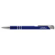 Kugelschreiber mit farbigem Schaft in glänzender Ausführung, mit silberfarbenen Elementen, blaue Mine, Produkt aus Aluminium