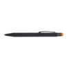 Kugelschreiber mit schwarzem Schaft, gummierte Oberfläche, farbige Stiftspitze ermöglicht Touchscreen-Bedienung, die gravierte Oberflächenfarbe kann weiß oder ähnlich der Stiftspitze sein, schreibt in blau, Produkt aus Aluminium