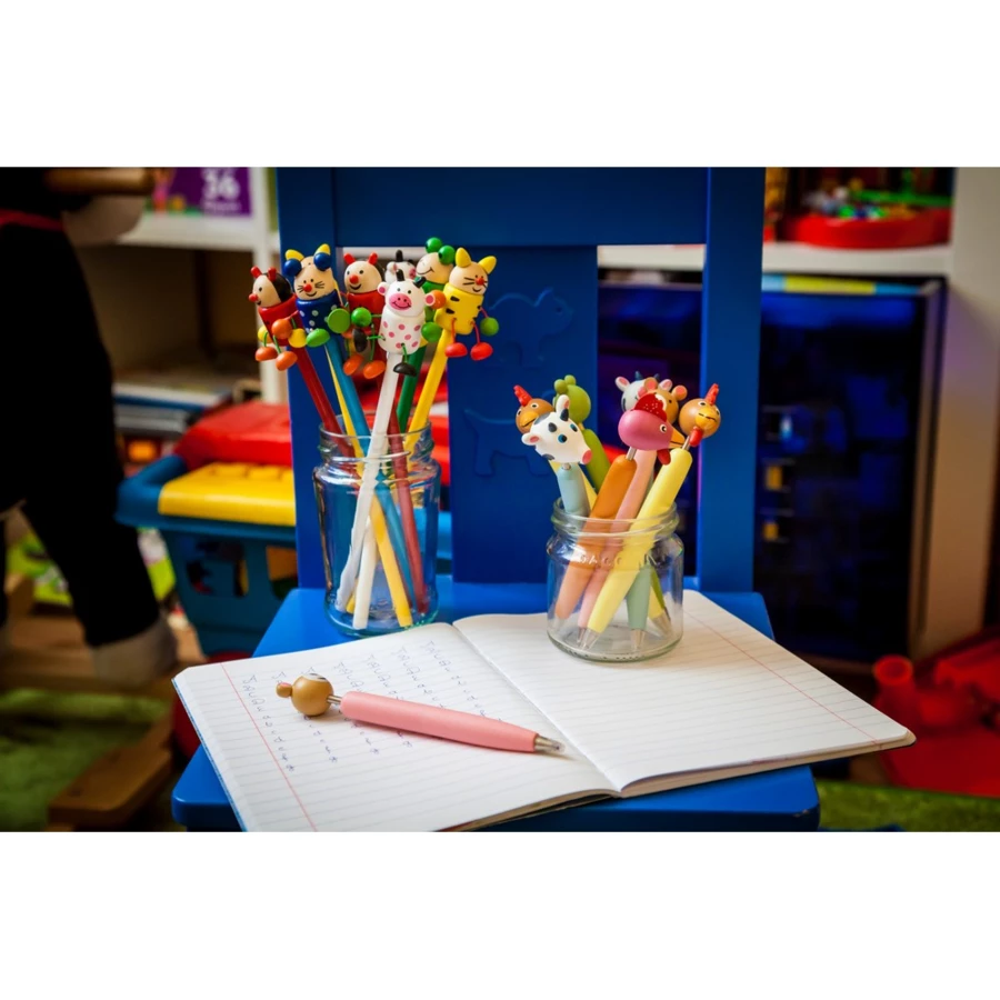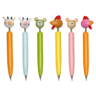Kugelschreiber "Tier" mit farbigem Schaft, erhältlich in 6 verschiedenen Designs, die nach dem Zufallsprinzip ausgewählt werden, blaue Mine, Produkt aus Holz und Eisen