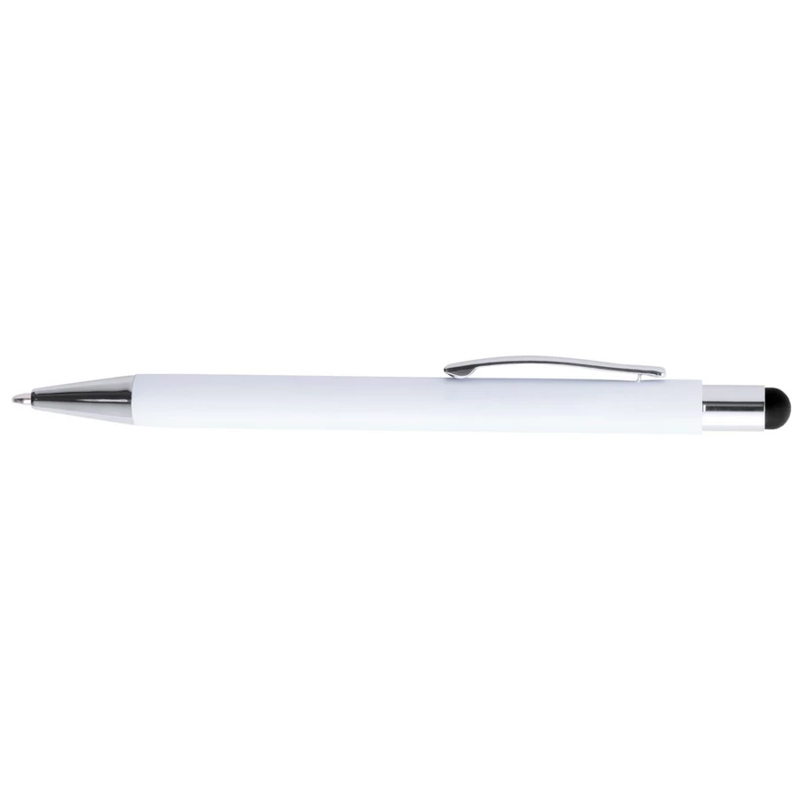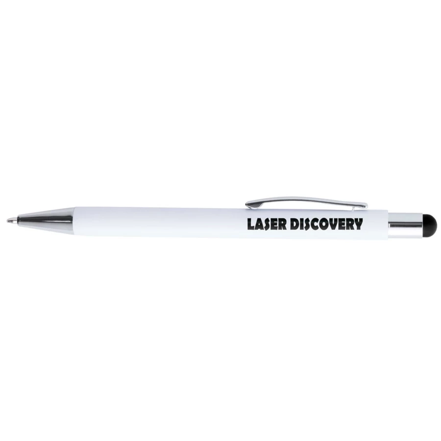 Kugelschreiber, Touch-Pen, weißer Schaft, matt, die Gravur zeigt Spiegelfläche in einer Farbe ähnlich der Gummispitze