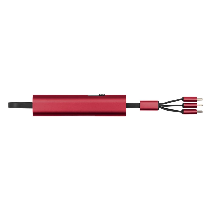 Ladekabel mit 4 Enden: USB, Micro-USB, USB-C und kompatibel mit iOS-Geräten, maximale Ladeleistung USB-C zu USB-C 15 W, übrige Anschlüsse 10 W, ermöglicht das gleichzeitige Aufladen mehrerer Geräte mit unterschiedlichen Anschlüssen, USB-C-Spitze mit Datenübertragungsfunktion, Kabellänge: 28 cm, Gehäuse mit großer Fläche, die gebrandet werden kann und ein Logo oder einen Marketing-Slogan tragen kann, Produkt aus Metall und ABS