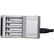 Ładowarka 4 baterii alkalicznych (AA / AAA) lub akumulatorów NiMH. Czas ładowania - 2 godziny. Zawiera wtyczkę do gniazdka.