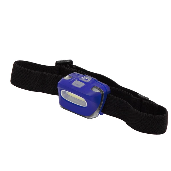 Latarka czołowa o strumieniu światła 100 lumenów. Dioda 3 W z wykorzystaniem technologii COB. Regulowany pasek na głowę/czapkę/kask. Regulowany kąt nachylenia latarki w zakresie 18-20 stopni. Zasilana 3 bateriami typu AAA (dołączone). Żywotność LED 100 000 godz. Zasięg 80 metrów.