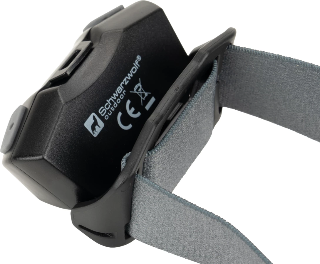 Latarka na głowę marki Schwarzwolf z diodą XPE. Posiada sensor dzięki któremu można włączać i wyłączać latarkę za pomocą gestu i 5 trybów świecenia: słabe światło, mocniejsze, miganie, czerwone światło oraz czerwone migające światło. W zestawie z gumką na głowę z logiem Schwarzwolf. Latarka ładowana przez USB typ C (kabel w zestawie). Gdy bateria jest w pełni naładowana, świeci do 7 godzin. Jasność: 120 lumenów.