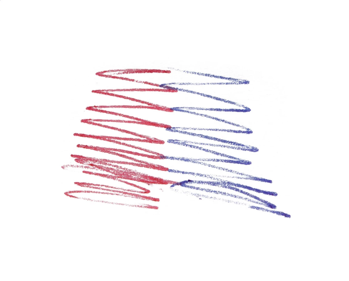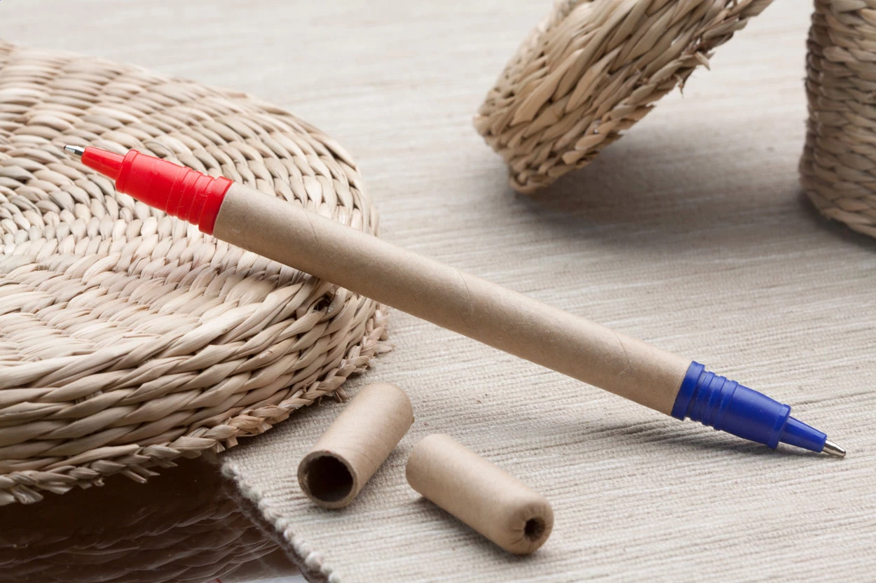 Kugelschreiber aus Recyclingpapier mit zwei Schreibseiten (blau und rotschreibend).