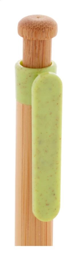 Bambus-Kugelschreiber mit Teilen aus ökologischem Weizenstrohkunststoff, blauschreibend.