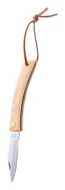Taschenmesser aus Edelstahl mit Bambusgriff und Band aus Kunstleder. Mit Sicherheitsverschluss.
