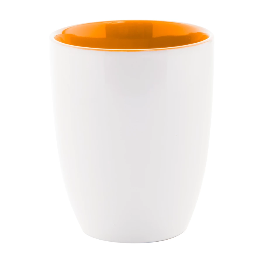 Hochwertige, weiße Keramiktasse mit eingefärbter Innenseite. Füllmenge: 300 ml. Einzeln in Kraftpapierbox.