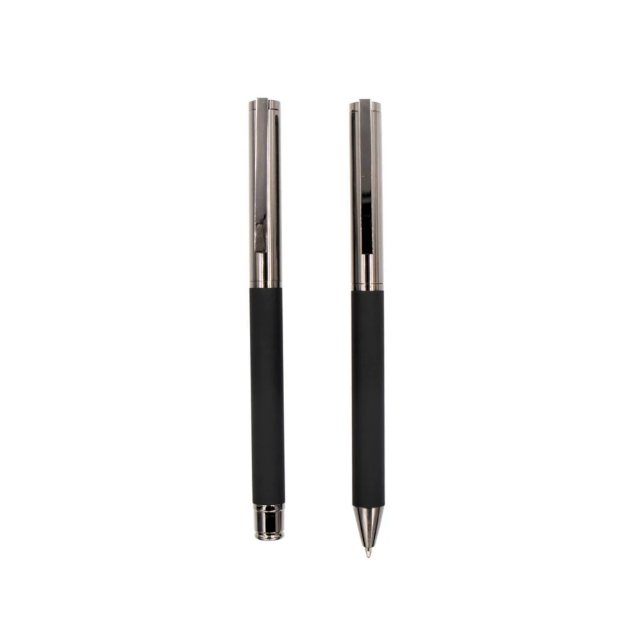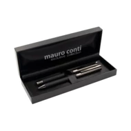 Mauro Conti Schreibset, Kugelschreiber und Rollerball mit schwarzem Schaft und glänzenden Details, in Geschenkbox