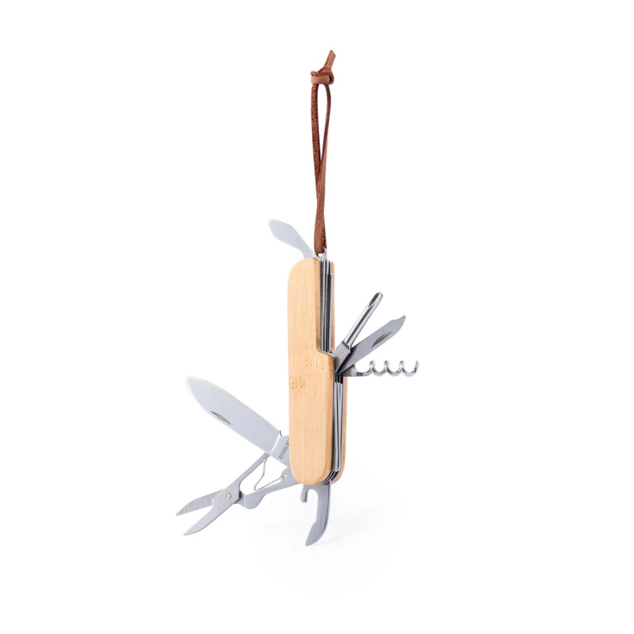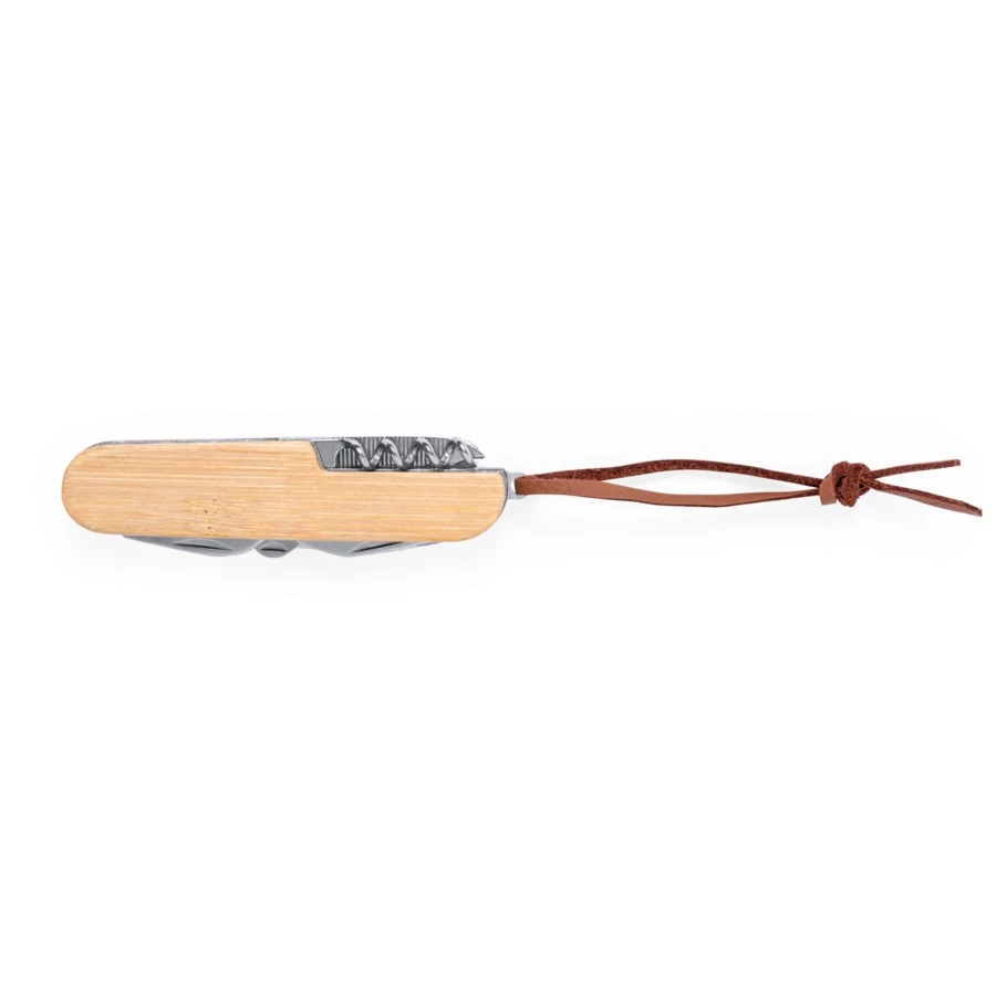 Multifunktionswerkzeug, Multifunktionstaschenmesser, 9 Funktionen, Öffner, Schere, Feile, Schraubendreher, Korkenzieher, Bambusgriff