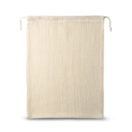 Beutel aus 100% Baumwolle (120 g/m²) mit Netzgewebe auf der Vorderseite (100 g/m²), Kordeln aus Baumwolle. Ideal für Lebensmittel. 300 x 400 mm