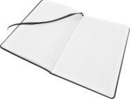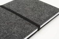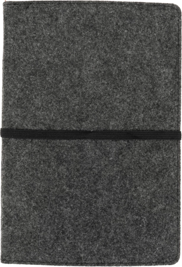 Notatnik A5 z filcową okładką, zakładką, zapięciem na gumkę i 192 stronami w kratkę.