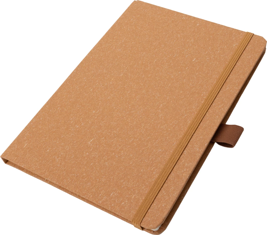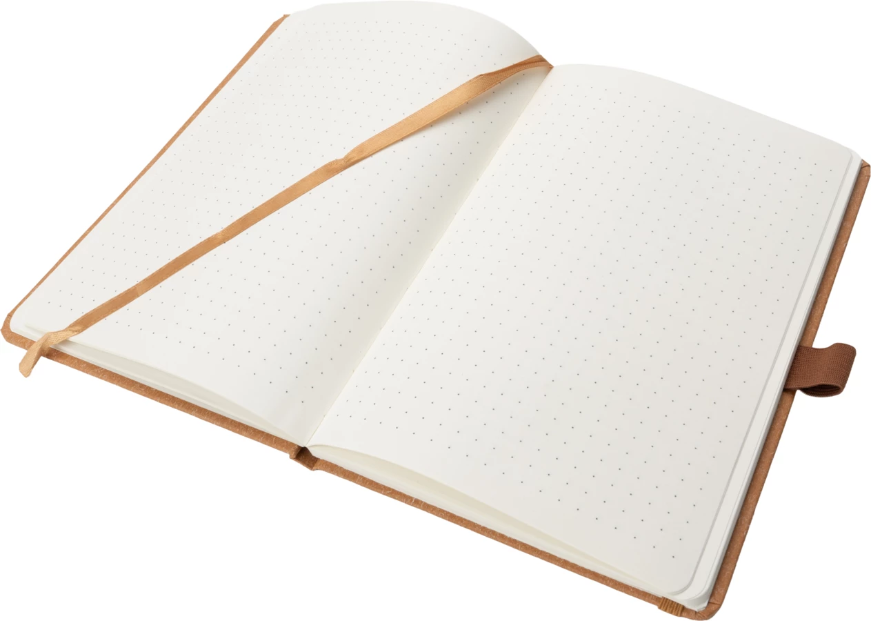 Notes o formacie A5 z zakładką i 160 stronami w kropki, zamykany na gumkę. Zarówno tekturowa okładka, jak i kartki są wykonane z papieru pochodzącego z recyklingu.