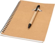 Notatnik A5 z długopisem KENTWOOD. Zestaw zawiera 60 kartkowy notatnik w linie oraz długopis, wykonane są z recyklingu. Wkład niebieski.
