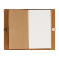 Notes w stylu retro w miękkiej okładce, zamykany elastyczną gumką. Zawiera 2 wymienne notesy, papier 80g/m2 po 30 stron każdy. Jeden notes zadrukowany jest w linie, drugi notes w kropki. Idealny rozmiar w podróży i do codziennych wpisów.