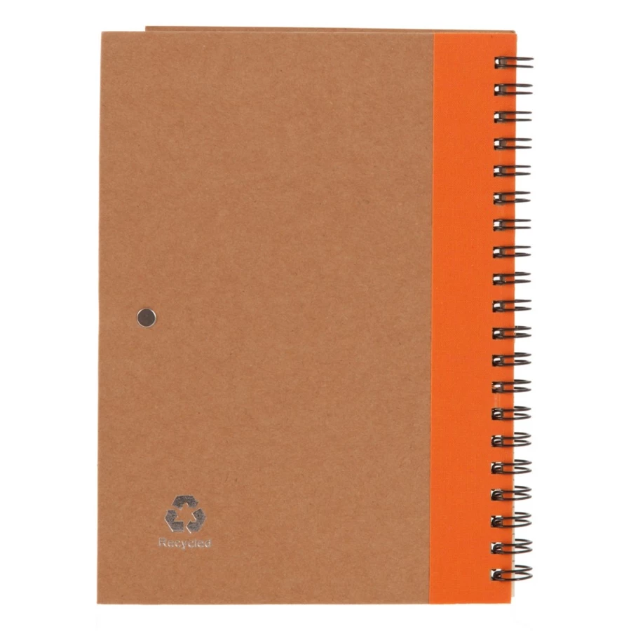 Notizbuch im Format ca. A5, mit 60 linierten Blättern (120 Seiten) und Spiralbindung, incl. farbigem Stift, blauer Mine, Umschlag aus Karton mit farbigem Element am Einband