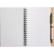 Notizbuch im Format ca. A5, mit 60 linierten Blättern (120 Seiten) und Spiralbindung, incl. farbigem Stift, blauer Mine, Umschlag aus Karton mit farbigem Element am Einband