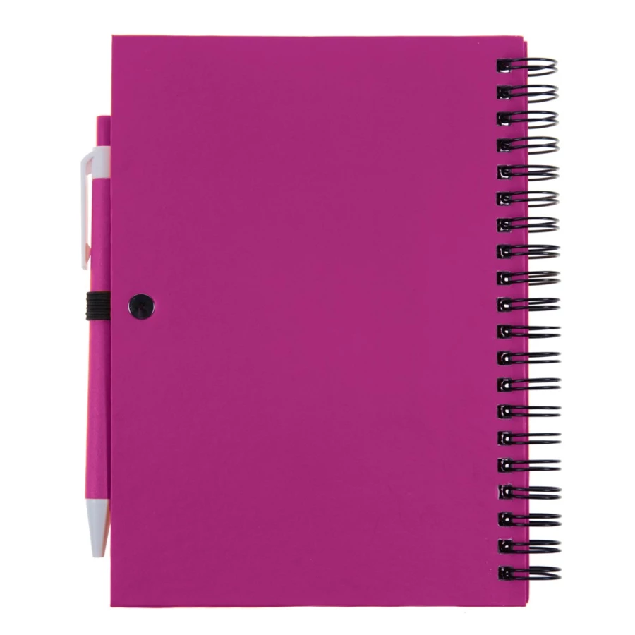 Notizbuch (ca. A5, 70 Blankoblätter) aus recyceltem Karton mit Kugelschreiber aus recyceltem Karton, fester Einband, Spiralheftung