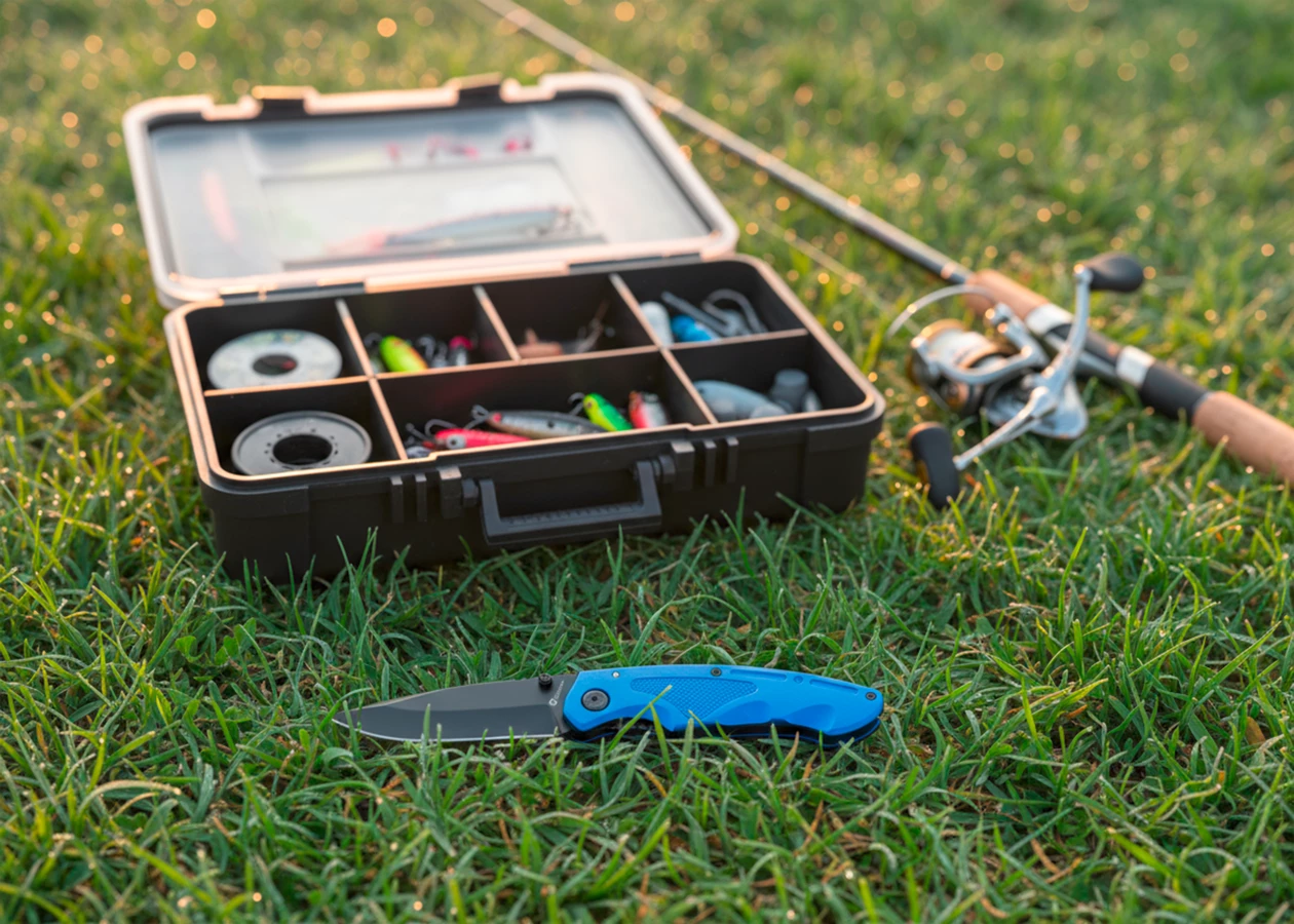 Nóż kieszonkowy wykonany ze stali nierdzewnej z aluminiową rękojeścią i klipsem do mocowania na pasku.