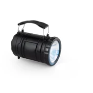 2-in-1-Laterne aus ABS und PS. 2 Modi der Nutzung: Outdoor-oder Camping-Lampe, die Sie auf große Flächen oder als Laterne mit dem Seitengriff, der auch abnehmbar ist zu beleuchten ermöglicht. Die Taschenlampe hat eine COB-LED (200 Lumen) und 1W (70 Lumen) LED. Ideal für Camping oder Outdoor-Aktivitäten. Inklusive 3 AA-Batterien. Geliefert in einer Schachtel. 87 x 140 mm