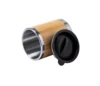 Doppelwandiger Thermobecher aus Edelstahl und Bambus mit Trinkdeckel aus Kunststoff. Füllmenge: 300 ml.