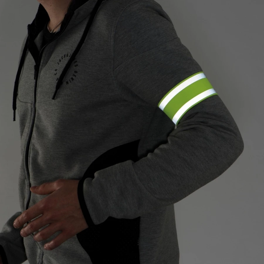 Odblaskowa opaska na ramię, regulowana. Wykonana z poliestru (20%) i elastanu (80%).