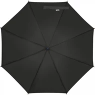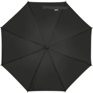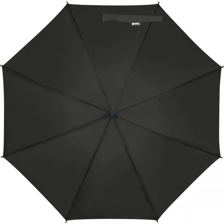 Automatyczny, wiatroodporny parasol, ze stelażem z włókna szklanego, panelami z poliestru RPET pochodzącego z recyklingu oraz zakrzywioną rączką z drewna.