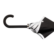 Automatycznie rozkładany parasol z przyjemną w dotyku gumowaną, plastikową rączką typu soft grip. Rama, pałąk i żebra wykonane z metalu. Brzeg parasola obszyty taśmą odblaskową. Średnica 1020 mm.