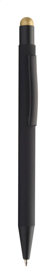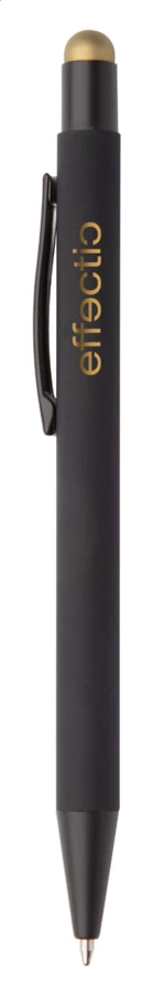 Aluminium-Kugelschreiber mit Touchpen und gummierter Oberfläche und Spezialbeschichtung für eine Farbgravur (Gravurfarbe abgestimmt mit Stylus), blauschreibend.