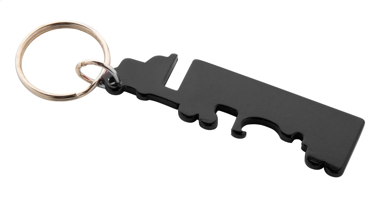 Aluminium-Schlüsselanhänger in LKW-Form mit Flaschenöffnerfunktion.