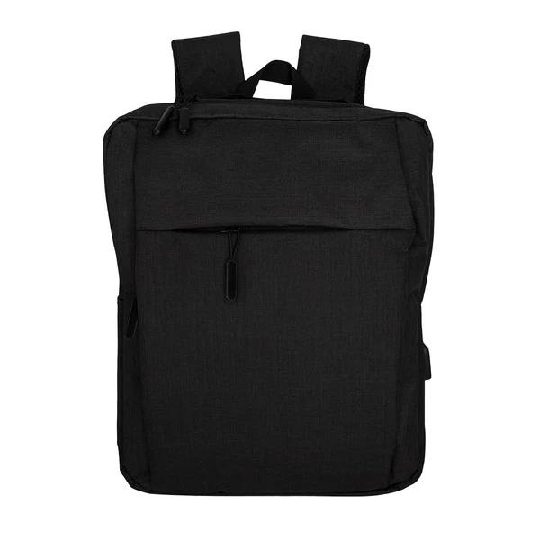 Plecak z przegrodą na laptop 15". Na zewnątrz dwie kieszenie zamykane na zamek, z boku gniazdo USB, dzięki któremu można podpiąć swój smartfon do powerbanka. Wewnętrzny kabel USB w zestawie. Miękkie wygodne plecy i szelki pokryte siateczką. Plecak posiada pasek na uchwyt walizki. Dodatkowo wewnątrz przegródki na akcesoria.