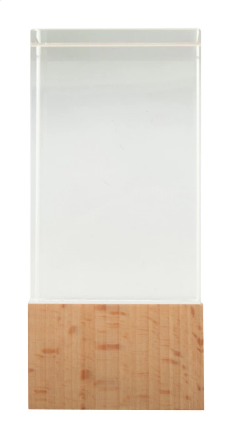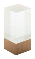 Trophäe aus Glas mit Boden aus Bambus. Verpackt in Kraftpapier-Geschenkbox.