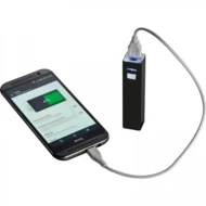 Metalowy power bank (zewnętrzny akumulatorek) o mocy 2200mAh pozwoli doładować telefon lub tablet. Kabel z wtyczką mikro USB w zestawie. Całość zapakowana w tekturowy kartonik z papieru z recyklingu. Input: DC 5V-500mAh; Output DC 5V-1000mAh.