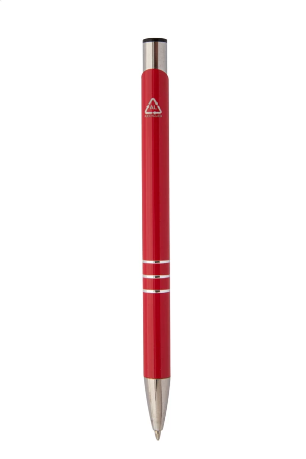 Kugelschreiber aus recyceltem Aluminium, blauschreibend.