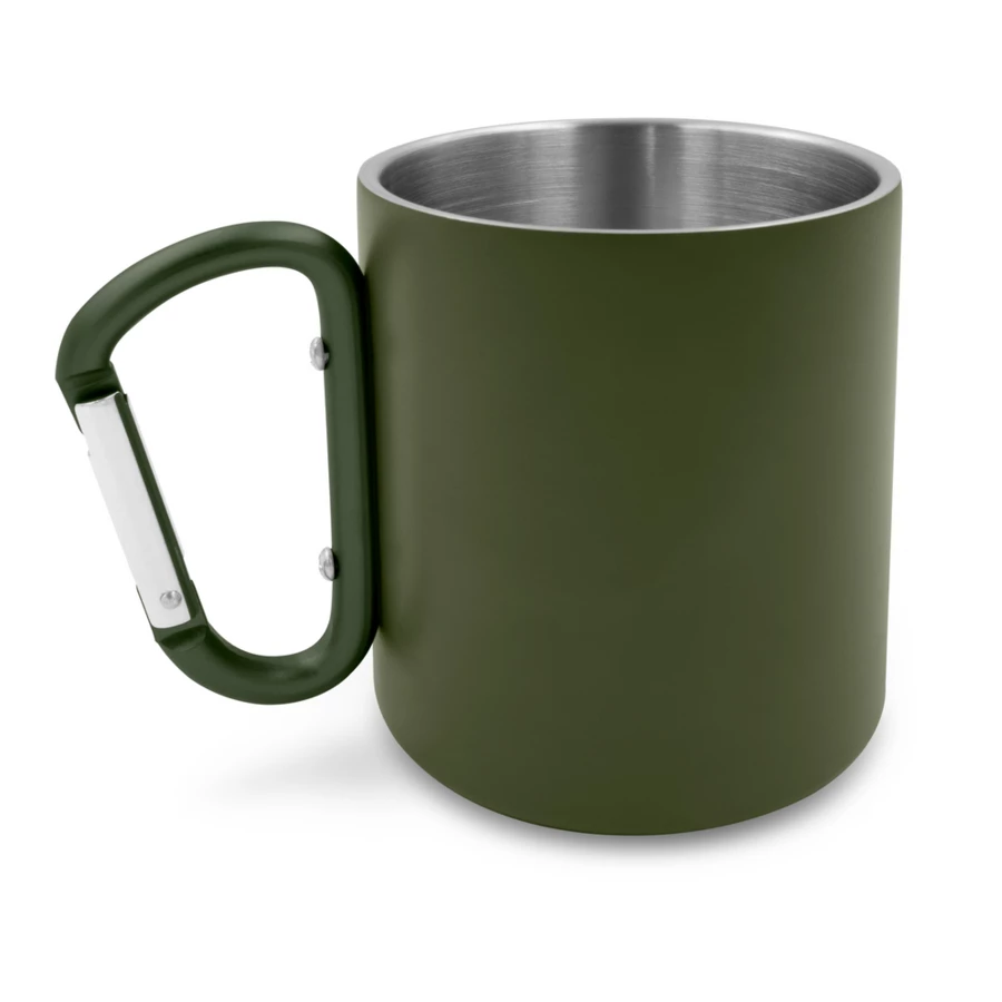 Becher 280 ml mit Karabinerhaken, aus recyceltem Edelstahl, doppelwandig