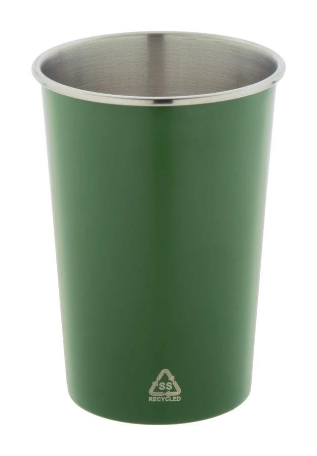 Einwandiger Becher aus recyceltem Edelstahl. Füllmenge: 350 ml.