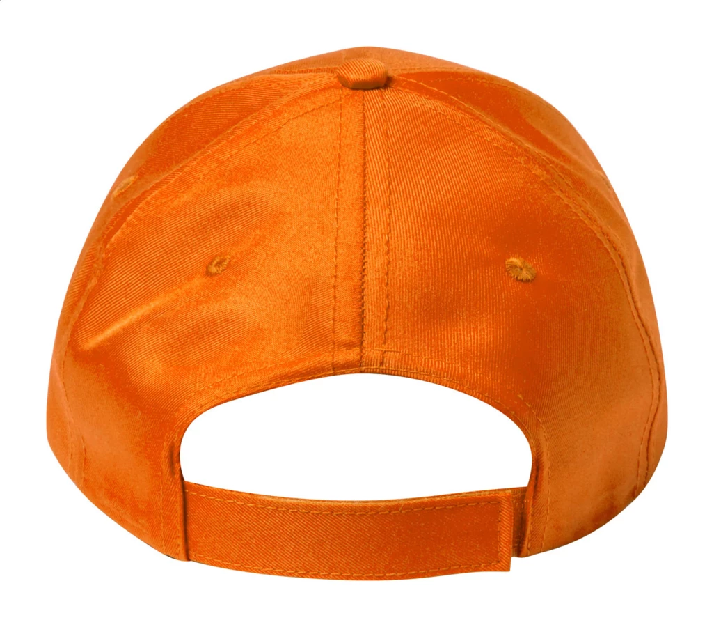 6-Panel Baseball-Cap mit Klettverschluss, Material: Polyester und Mikrofaser.