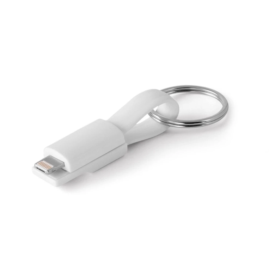 USB Kabel 2-in-1 aus ABS und PVC mit einem Schlüsselring. Geeignet zum Aufladen von Mobilgeräten und kompatibel mit Micro USB Eingang und iOS. 12 x 50 x 10 mm