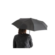 Automatik Taschenschirm aus recyceltem Polyester (100% rPET) 190T Pongé mit Fiberglas-Speichen und Holzgriff. Dieser Regenschirm lässt sich 3fach schliessen, ist windfest und ist mit automatischer Öffnung und Schließung ausgestattet. Geliefert in einer Hülle. Regenschirm: ø990 x 285 mm | Beutel: ø55 x 240 mm