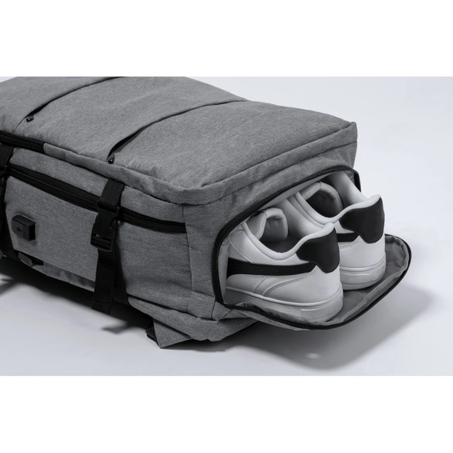 Laptop-Rucksack aus RPET 17", Schuhfach, gepolstertes Laptopfach, USB-Anschluss (Powerbank nicht im Lieferumfang enthalten), gepolsterter Rücken und verstellbare Schultergurte