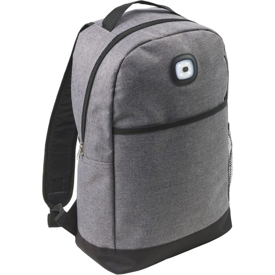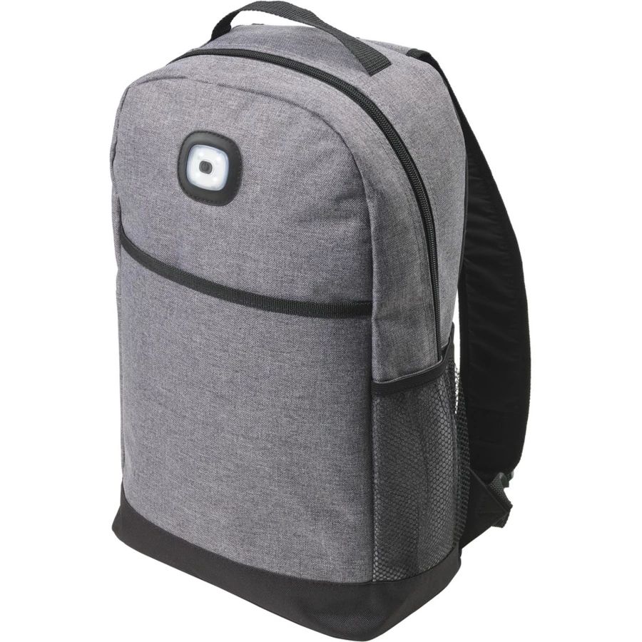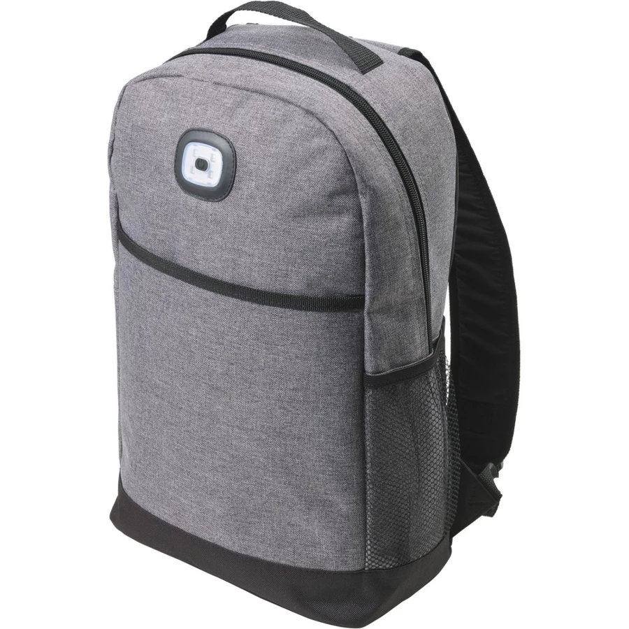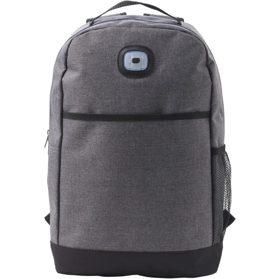 Rucksack mit Lampe, 2 Lichtfunktionen (weiß und rot), Hauptfach mit Reißverschluss, Frontfach, seitliche Netztasche