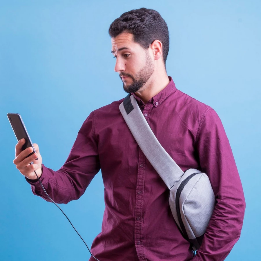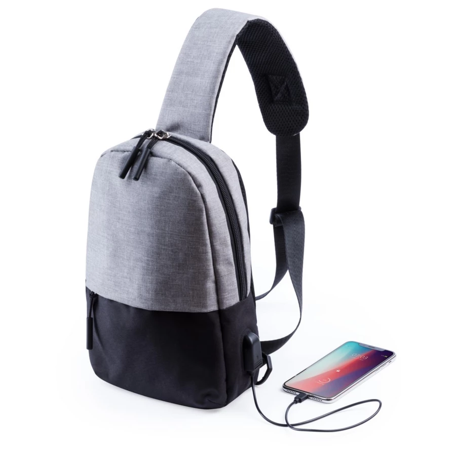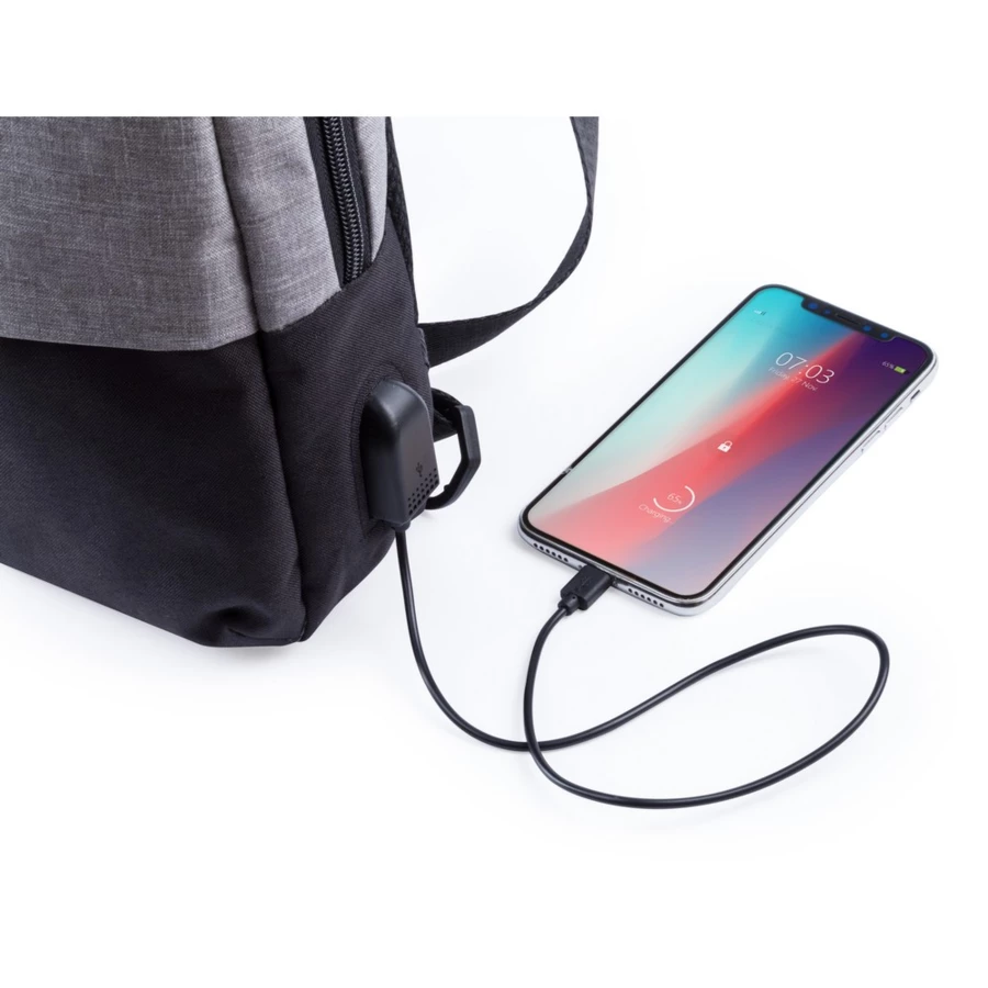 Rucksack mit gepolstertem Schultergurt, USB Anschluss (ohne Powerbank), Haupt- und Frontfach mit Reißverschluss