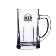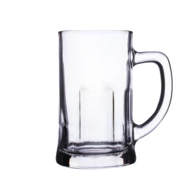Markanter Bierkrug mit dicken Wänden. Mit bequemem Henkel und charakteristischen Rillen am Boden.