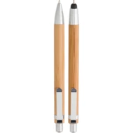 Schreibset im Geschenkbox, Kugelschreiber, Touch-Pen und Druckbleistift (0,5 mm)mit Bambus-Schaft, mit Silberteilen