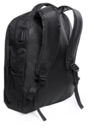 Wasserfester Rucksack mit Reißverschlussfächern, gepolsterten Laptop- (15") und Tabletfach (10"), gepolsterten Rücken und Schultergurten, Kopfhörer-Ausgang und eingebautem USB-Anschluss für Powerbanks. Material: 600D Polyester.