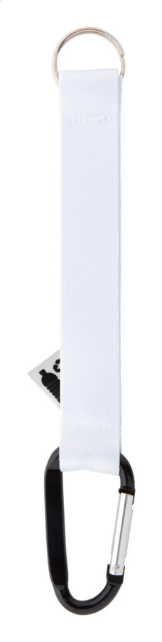 Individueller Schlüsselanhänger aus RPET-Polyester mit Metallkarabiner aus Aluminium und Schlüsselring aus Metall. Der Preis ist inkl. Sublimationsdruck auf beiden Seiten. Mindestmenge: 100 Stk. Mit RPET-Label.