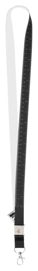Individuelles Lanyard aus RPET, mit 100 cm Maßband auf der Rückseite, Metallkarabiner und Verschluss aus Weizenstrohkunststoff. Der Preis ist inkl. Sublimationsdruck auf beiden Seiten. Mindestmenge: 100 Stk.