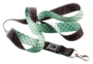 Individuelles Lanyard aus RPET mit 100 cm Maßband auf der Rückseite und Metallkarabiner. Der Preis ist inkl. Sublimationsdruck auf einer Seite. Mindestmenge: 100 Stk.