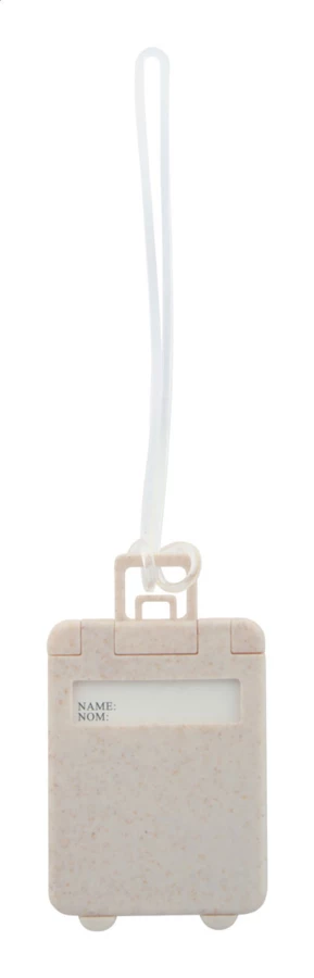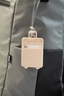 Kofferanhänger in Trolley-Form aus ökologischem Weizenstroh-Kunststoff mit elastischem Band.